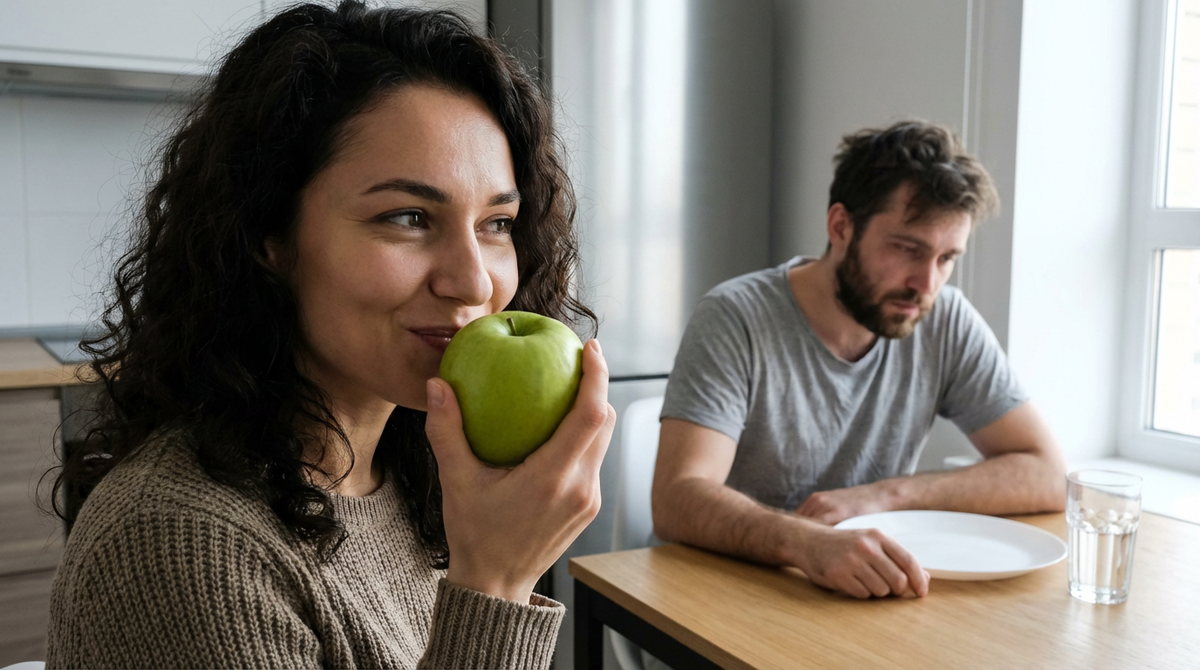 – Марин, ну хватит уже, – взмолился Сергей в пятницу вечером, глядя, как жена с аппетитом ест большое зеленое яблоко. – Я нормальной еды хочу. Котлет, борща, пюрешки с гуляшом. У меня желудок скоро к позвоночнику прилипнет.