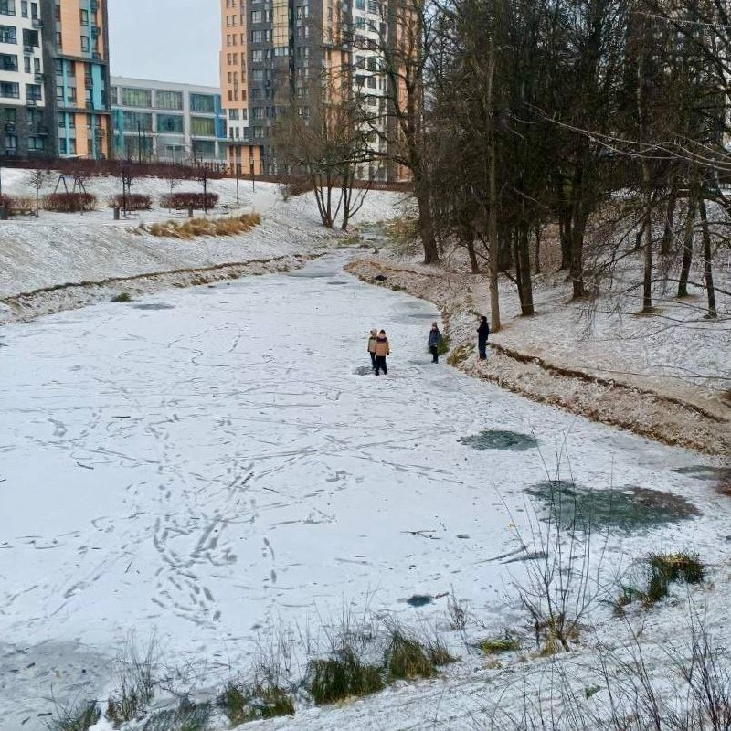 В ответ на пост 🧊 Едва в ЖК «Скандинавия» лёд покрыл местный пруд, как дети сразу вышли пробовать свою удачу. Ежегодно пополняется статистика, кому не везёт, но малышня упорно дёргает судьбу за удачу.