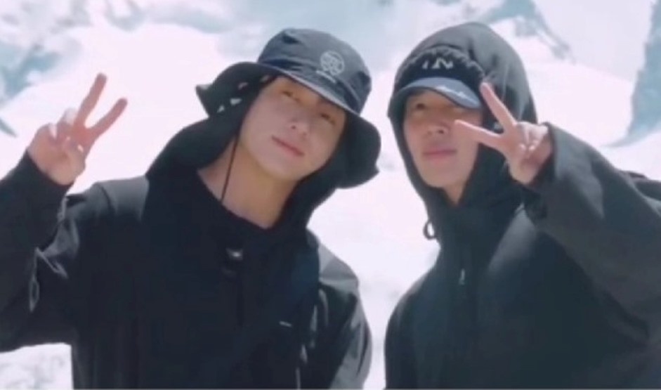 После катания на кикбайках Чонгук и Чимин отдыхали в отеле. Чонгук очень ловко спрятался от Чимина, и тот долго искал его по всем комнатам, пока не обнаружил в своей собственной. Чонгук страшно веселился. Потом оба улеглись подремать - у них было минут сорок для следующего марш-броска. Это действительно оказался марш-бросок, потому что они опять почему-то опаздывали на поезд! Сначала такси, потом уже привычная пробежка по вокзалу: Ехать им было минут тридцать и Чимин заснул, а Чонгук его фотографировал и хихикал: Красивые виды по пути: Прибыв в Ротенбоден, парни отправились на прогулку к озеру, в котором так красиво отражается величественная гора Маттернхорн, и устроили там фотосессию. По дороге Чонгук фотографировал каждый встреченный на пути цветочек, а еще они услышали крик сурка, а потом и увидели его. Они такие смешные, особенно Чонгук в своем вечном оверсайзе и зачетной шляпе! А потом они летали на параплане! Трепетный Чимин, конечно, немного трусил, в чем сам честно признался,
