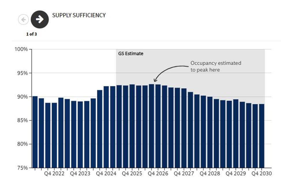 Ключевая метрика, за которой предлагает следить Goldman Sachs, — occupancy, т.е. уровень загрузки или «обеспеченность мощностями».