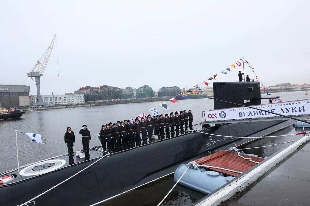 В Петербурге состоялась церемония подъема флага на новой подлодке В Санкт-Петербурге на подводной лодке «Великие Луки» подняли Андреевский флаг. Новая подводная лодка «Великие Луки» официально введена в состав Военно-морского флота России. Церемония подъема Андреевского флага прошла в Санкт-Петербурге. Об этом сообщил вице-губернатор Северной столицы Кирилл Поляков в своем Telegram-канале. По его словам, дизель-электрическая подлодка проекта 677 «Лада» построена на «Адмиралтейских верфях» и официально введена в состав Военно-морского флота России. Петербург, выполняя поручения Президента, продолжает пополнять флот современными кораблями, несмотря на санкционное давление, добавил Поляков Он сообщил, что «Адмиралтейские верфи» подтверждают статус ведущего центра неатомного подводного кораблестроения. Вице-губернатор подчеркнул важность события для страны и назвал поднятие флага не просто завершением строительства, а символом уверенного движения вперед и укрепления безопасности стра
