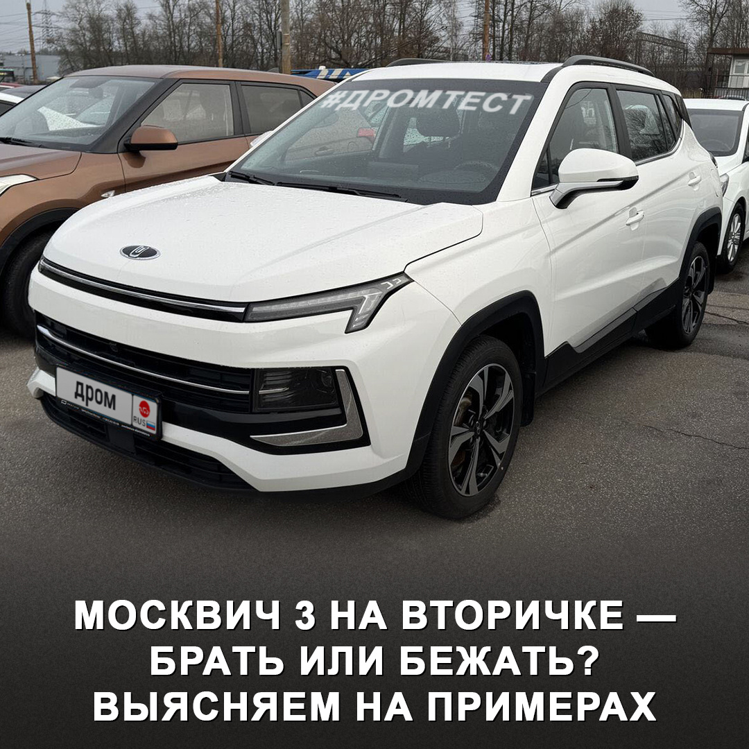 Стоящий вариант или можно даже не смотреть? Проверили это на реальных примерах с автоподборщиком 😉 Сейчас на Дроме около 250 кроссоверов Москвич 3, большинство из них оснащены вариатором, а цены — от 900 000 ₽. Мы осмотрели шесть вариантов. → 2024 год, механика, 12 000 км на одометре, 1 400 000 ₽ — владелец хочет продать машину из-за неудобного багажника, для него это критично. Ро технике всё в порядке, кузов и салон в идеале, сделан антикор, на сиденьях лежат накидки. Уже выбрана замена — более крупный Haval M6. → 2024 год, вариатор, 29 000 км, 1 500 000 ₽ — минимум сколов, следы небрежно выполненного антикора, салон после химчистки. Электрика работает без сбоев, но на ходу вариатор постоянно дёргается, подвеска передаёт на кузов вибрации. → 2023 год, 34 000 км, 1 700 000 ₽ — дополнительно установлен подогрев сидений, внешне ЛКП цело, но на внутренней стороне капота уже есть коррозия. Салон прокурен, скрипят изношенные колодки. Причина продажи — замучили мелочи: то подклинивало задн