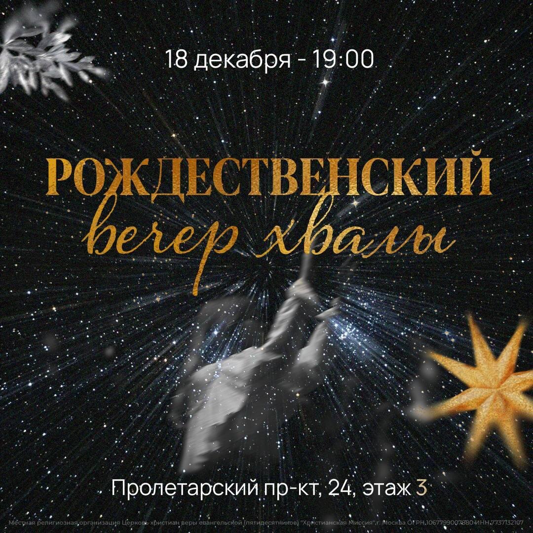 Иногда мы так заняты, что даже самое важное откладываем «на потом»... 18 декабря / 19:00 / Пролетарский пр-т, 24, 3 этаж Рождественский вечер хвалы – это возможность остановиться, выдохнуть и быть с Богом без спешки и отвлечений. Этот вечер про благодарность за всё, что Бог сделал за год, про единство церкви и живое Божье присутствие. Про момент, когда можно оставить дела, телефоны и заботы и просто быть в Его присутствии. Мы верим, что такие вечера расставляют всё по местам и помогают начать новый сезон с правильного фокуса!