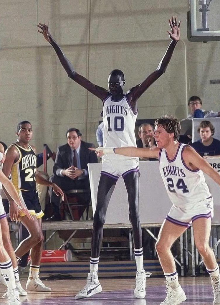 Мануте Бол — самый высокий игрок в истории НБА 2 метра и 31 см роста 🚀 Даже среди профессиональных баскетболистов он выглядит необычно: слишком длинные руки, ноги, слишком высокий. На фотографиях рядом с обычными людьми Бол выглядит сюрреалистично: все двери ему маленькие, кровати короткие, машины тесные. Его фигура бросалась в глаза где угодно, и даже среди своих коллег по НБА он выделялся! Мануте Бол родился в Судане, в племени динка, где высокие люди не редкость, но даже там его рост считался исключительным. Детство он провёл в условиях, далеких от баскетбольных площадок, и только в юности занялся спортом. Суданские реалии, тяжелая жизнь и традиции племени сформировали в нём стойкость и удивительную жизненную силу. В НБА Бол не стал звездой по очкам, но вошёл в историю как один из лучших блокирующих своего времени. Он был кошмаром для противников в защите и уникальным игроком, чьи показатели блок-шотов до сих пор считаются эталонными. Кроме спорта, Мануте Бол известен и как