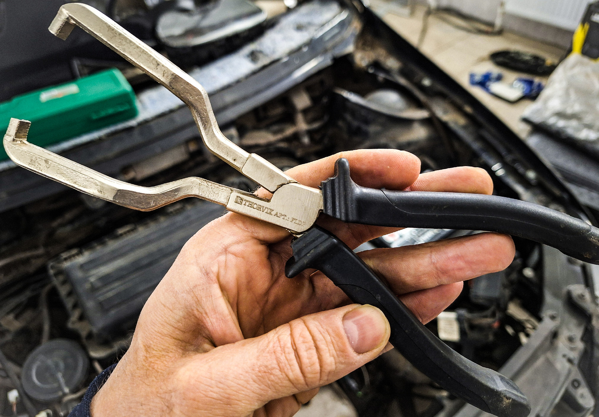 Приветствую, друзья. Сегодня я хотел бы рассказать об одном весьма полезном приспособлении, которое, по моему убеждению, должно быть у каждого автолюбителя в гараже, особенно им должен обладать тот, кто время от времени обслуживает свой транспорт самостоятельно. Ниже на фото показан тот самый хитрый инструмент, о котором пойдёт речь в этой статье. Внешне он похох на любой другой шарнирно-губцевый инструмент и кто-то даже может спутать его со щипцами для демонтажа-монтажа стопорных колец, однако это приспособление ничего общего со стопорными кольцами не имеет, так как его предназначение совсем в другом. Возможно, кто-то уже догадался, какую функцию выполняет этот хитрый "съёмник", ну а если нет - то ниже я подробно об этом расскажу. Итак, если вы хоть раз имели дело с топливной системой более или менее современного автомобиля, то скорее всего сталкивались с проблемой при демонтаже топливных магистралей и трубок. Да взять даже такую банальную процедуру, как замена топливного фильтра или