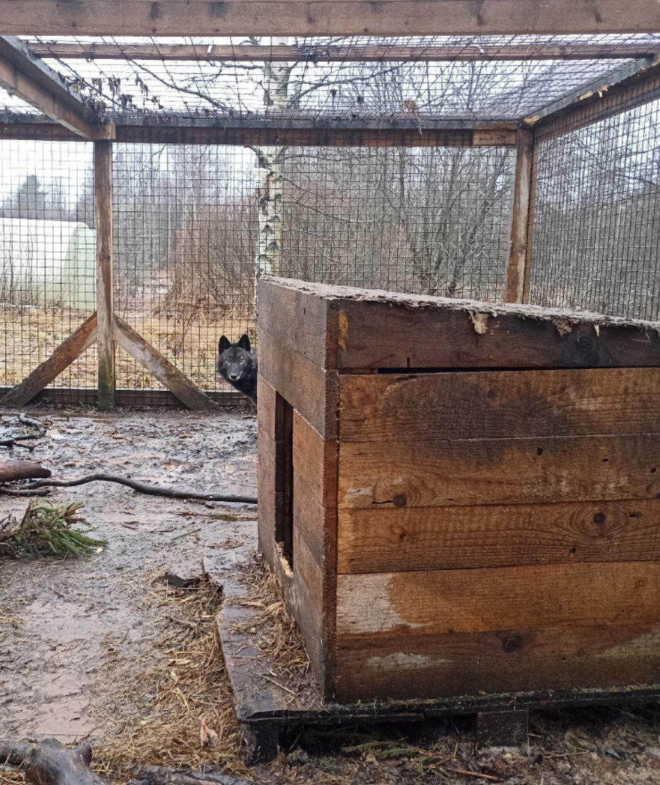И можем отметить это маленькой победой в моих отношениях с ней. У нас получилась фактически первая фотосессия с моим прямым подходом к вольеру без её запрятывания в будку. Раньше для таких фоток мне приходилось заходить в вольер, выгонять её из будки и спешно фоткать её метания до обратного зашмыгивания в укромное её логово. И вот - канадская трепетная красотка, хоть и не без опаски, но согласилась на фотопроменад не смотря ни на моё присутствие, ни на не особо любимый глаз телефона.