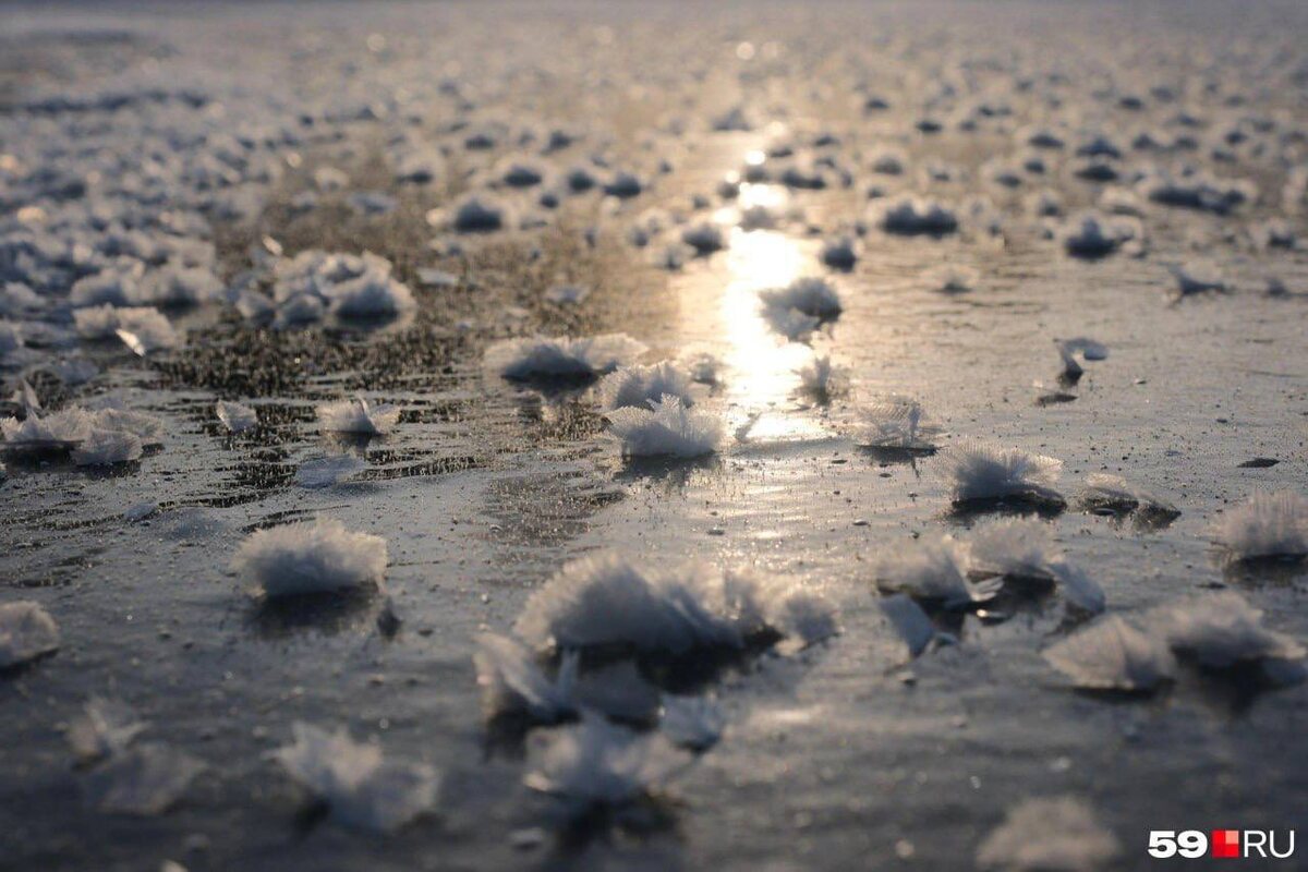 Танцующие кристаллы: редкое природное явление можно было наблюдать на Сылвенском заливе Камского водохранилища в Пермском крае — здесь