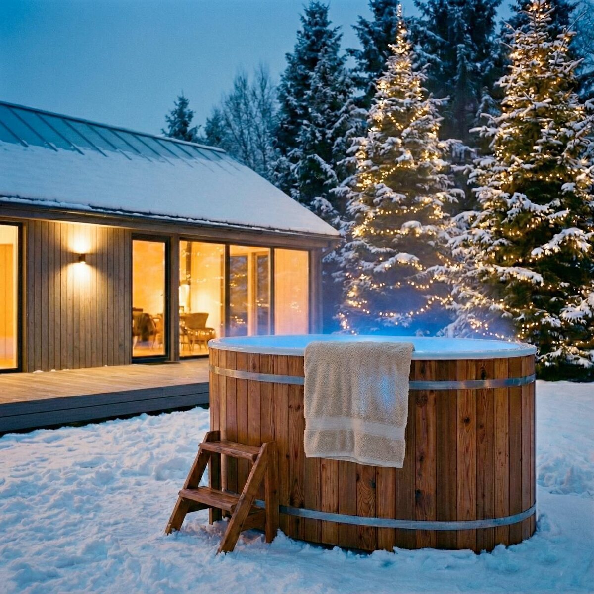 ! 🎉 Заснеженные дорожки и мягкие пушистые снежинки. Около дома греется купель с печкой на дровах. Время, когда можно забыть о повседневных заботах и окунуться в теплую купель! 🙌 Это могут быть ВАШИ зимние праздники!🎊