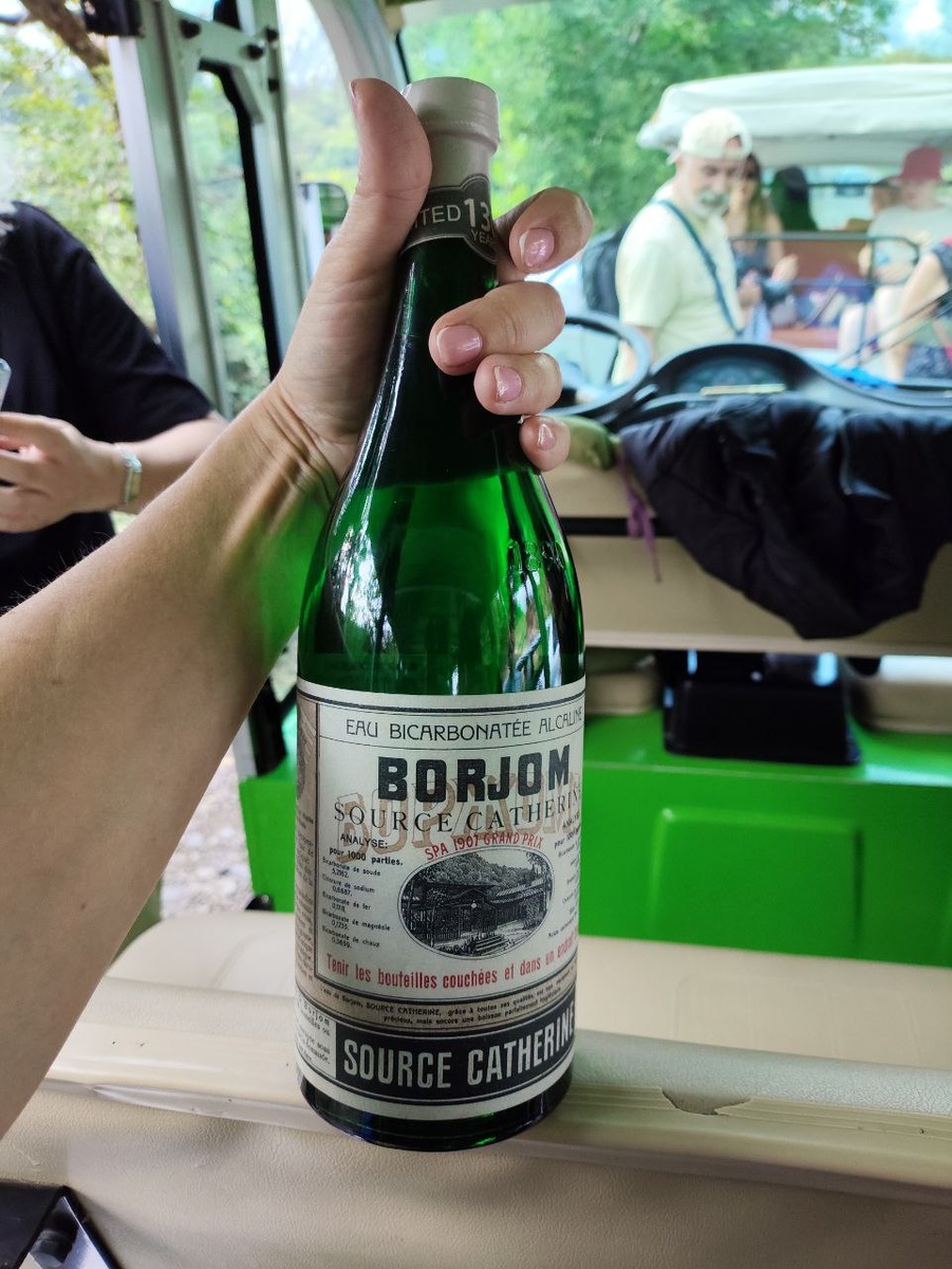 Мы направляемся в боржомский парк. По дороге Виктория обращает наше внимание на очень красивый двухэтажный особняк небесно-голубого цвета с резным балконом. Он называется "Фируза", что бирюза в переводе. Вроде и созвучно, но я не догадалась. Этот дом был построен в 1892 году по инициативе персидского консула Мирзы‑Риза‑хана азербайджанским зодчим Юсуфом. В ходе строительства с Юсуфом произошла трагедия. Его обманом заманили в Тифлис, где он вместе со своими родителями убит дервишем. Причины убийства выяснить не удалось. Тифлис - это название Тбилиси, которое было после присоединения Грузии к Российской империи. Правильнее все же звучит Тбилиси, Тифлис здесь я использовала для обозначения эпохи. Мы продолжаем наше путешествие и подходим к центральному парку, он не очень большой, но очень своеобразный и красивый. Виктория подводит нас к тёплому Екатерининскому источнику (рассказ о нём был в предыдущей части). Посетителей к источнику не пускают, но работница парка раздает воду каждо
