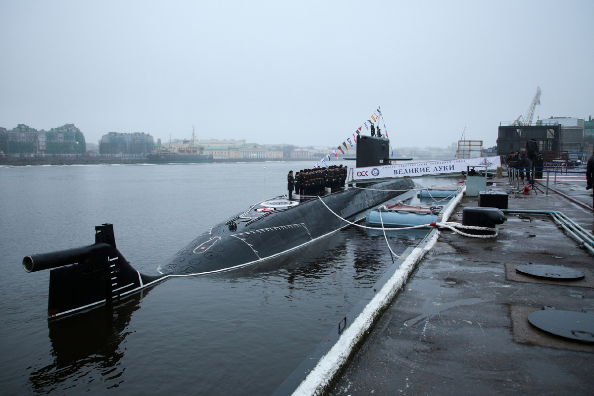 На Адмиралтейских верфях ОСК состоялась торжественная церемония. На дизель-электрической подводной лодке «Великие Луки» подняли Андреевский флаг, что ознаменовало её ввод в состав ВМФ России. Это третья подлодка проекта 677 «Лада».