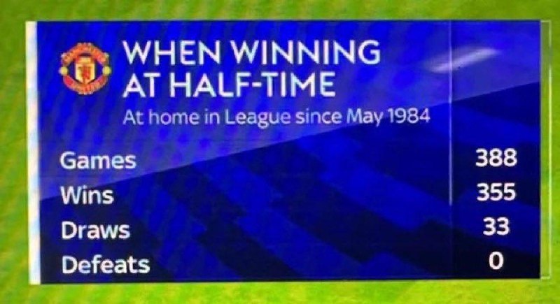 Вчера "Манчестер Юнайтед" едва не похоронил рекорд, по которому "красные дьяволы" не проигрывают дома в чемпионате, если ведут в счете к перерыве ☝️