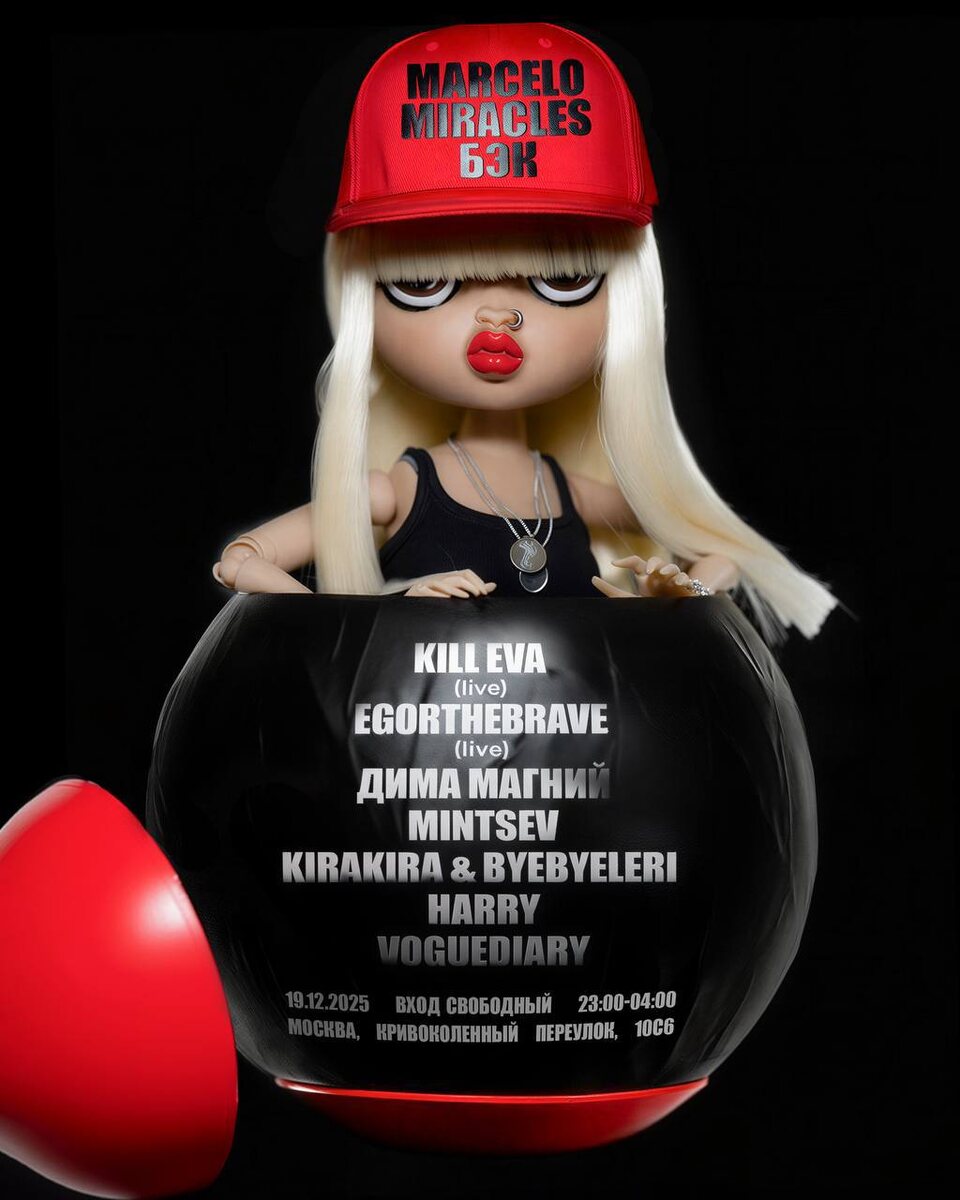 O.L. БЭК В MARCELO MIRACLES SHOP & BAR 19 декабря L.O.L. — это новая вечеринка-сюрприз, яркий перфоманс и кулуарное событие со строгим фейс-контролем от агенства БЭК в любимом MARCELO MIRACLES BAR & SHOP. В лайн-апе медийные персонажи с взрывными мэшапами, поп-хитами, хип-хопом, электроникой и лайвами: KILL EVA (live) EGORTHEBRAVE (live) ДИМА МАГНИЙ MINTSEV KIRAKIRA & BYEBYELERI HARRY VOGUEDIARY Ждем всех нарядными для наших фоотчетов 📸 🎫 Вход свободный FC / DC 18+ 📆 19 декабря, 23:00 — 05:00 📍Marcelo Miracles Shop&Bar Кривоколенный пер., 10, стр. 6, Москва