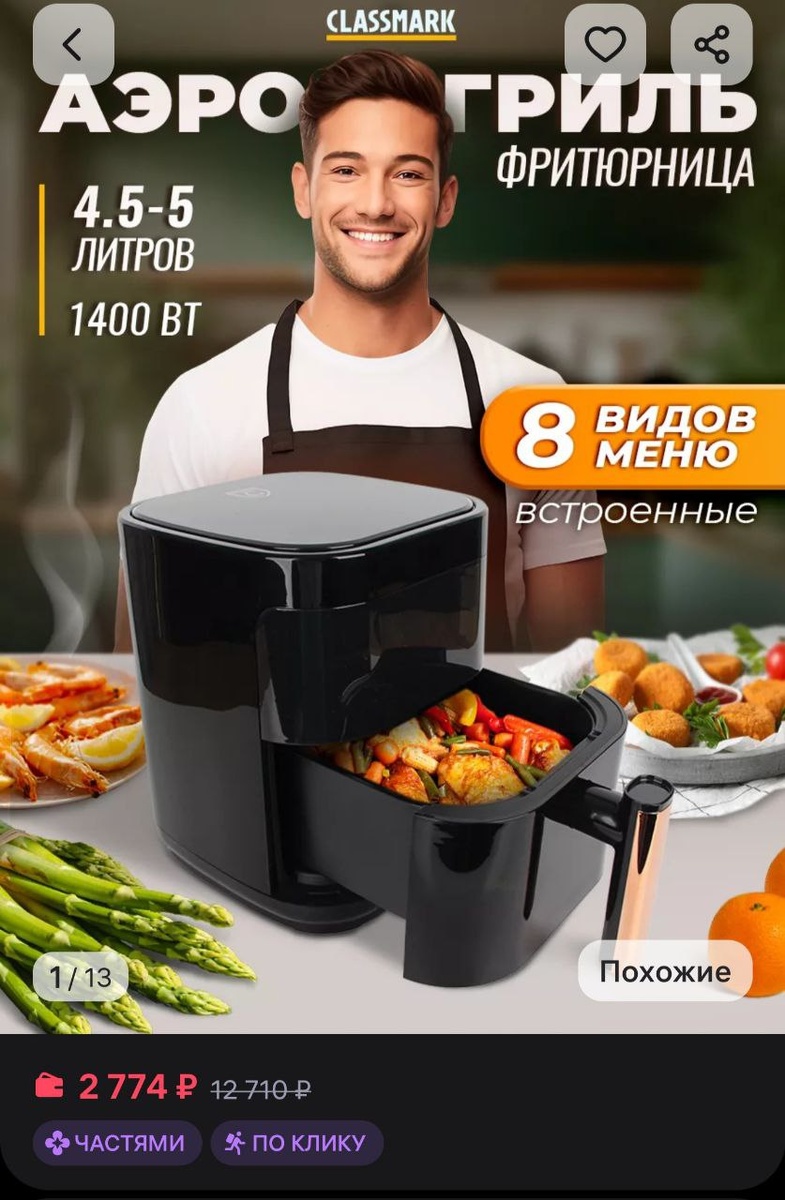 Аэрогриль электрический для дома - аэрофритюрница Classmark