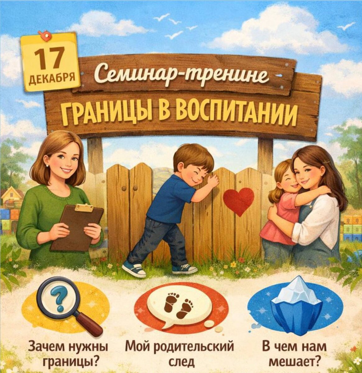 Дорогие родители! Уже в эту среду, 17 декабря, мы приглашаем вас на практический семинар-тренинг о границах — одной из самых сложных и одновременно важных тем в воспитании. 🔹 Зачем нужны границы? Почему дети с понятными границами чувствуют себя не «ограниченными», а любимыми и в безопасности. 🔹 Мой родительский след Как наши слова, реакции и даже интонации формируют у ребёнка представление о собственных и чужих границах. 🔹 Что мешает быть последовательными? Разберём основные «подводные камни», с которыми сталкивается почти каждый родитель. Наталья Костючок, психолог Монтессори-центра «Мон Ами» 🕓 Когда: 17 декабря, с 16:00 до 18:00 📍 Где: Школа Монтессори-центра «Мон Ами», ул. Бонч-Бруевича, 1В ❗️Обратите внимание: адрес проведения изменён — мы выбрали более комфортное пространство для семинара❗️ 👟 С собой просим взять сменную обувь. 💛 Участие бесплатно для родителей нашего Центра 💛 Для гостей — 1000 рублей ✍️ Запись по ссылке: https://forms.yandex.ru/cloud/68db86fed046881bf039