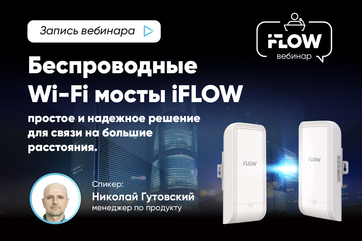 Запись вебинара «Беспроводные Wi-Fi мосты iFLOW – простое и надежное решение для связи на большие расстояния»