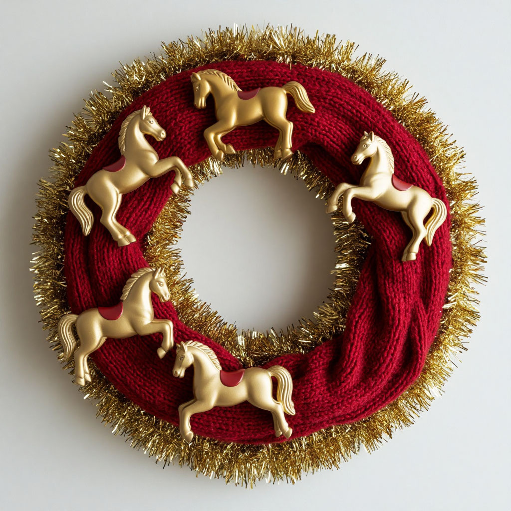 Дорогие рукодельницы и творческие личности! Предлагаю вам простой, но очень красивый и экономичный способ украсить дом к Новому году — изготовить оригинальный новогодний венок из подручных материалов, которые найдутся в любом доме. Магазинные венки порой стоят недешево, а наши руки способны сотворить чудо из того, что уже имеется под рукой! Я уже расписывала мастер класс по изготовлению венков вот они: Но сейчас хочу предложить бюджетную альтернативу. Венок предлагается делать из обычного картона, который легко найти дома, а для декора использовать старый вязаный шарф, который уже не надевается, и добавить к нему природные элементы вроде шишек, веточек ёлки и фигурку лошадки. Всё это выглядит вполне реалистично и доступно, особенно если хочется создать что-то своими руками без больших затрат. Необходимые материалы: