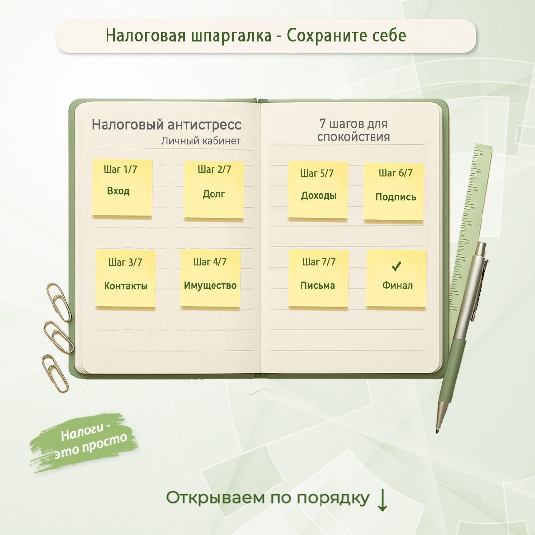 ). Сейчас это нужно каждому. Декабрь собрал в список дел всё, что откладывали весь год. 📄 А с января начинается “горячий” сезон налоговой отчетности — не только для бизнеса, но и для обычных граждан. Важно не пропустить этап подготовки. И он тоже приходится на декабрь. 🤦♀️ Чтобы облегчить этот путь, я запускаю «Налоговый антистресс»: быстрый чек-ап для подготовки Личного кабинета (ЛК) к "горячему" сезону. 👉 Что будет: 🔵7 коротких постов-шагов. 🔵Время: 3-5 минут в день. 🔵Бесплатно. 🔵И да - будет подарок самым активным участникам. 🎁 👉 Зачем вам это: ✅ чтобы не пропустить долги и пени; ✅ чтобы увидеть ошибки/лишние начисления; ✅ чтобы не проспать важное сообщение от ФНС; ✅ спокойно закрыть год и быть готовым к сезону отчётности. 👉 Простые правила участия: 🔵Включаете уведомления. 🔵Каждый день открываете пост с действием дня. 🔵Под каждым шагом пишете комментарий: «Готово ✅» (или что нашли у себя в ЛК: «долг/переплата/письмо»). Если совсем нет сил, ставьте плюсик “+”, я п