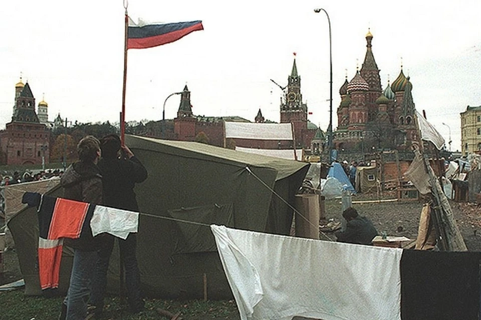 Первые палатки появились в мае 1990 года на Манежной площади и в Александровском саду прямо напротив стен Кремля.