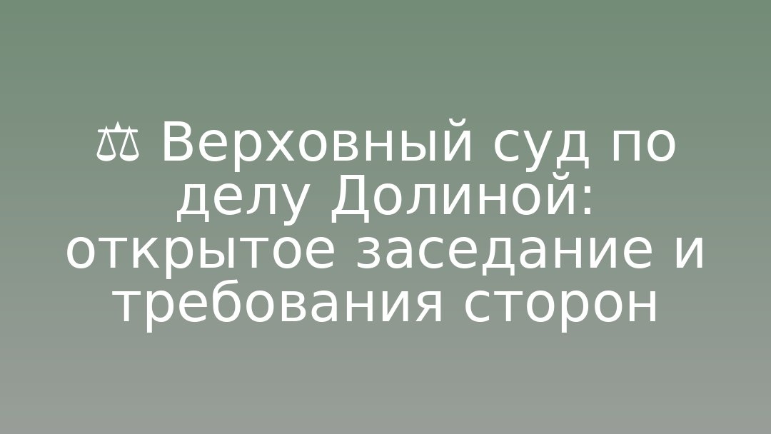 - и видеосъёмку, руководствуясь принципами гласности и открытости. Певица на заседание не явилась; покупательница квартиры Полина Лурье присутствует и заявила требования о признании права собственности и выселении Долиной. По данным сторон, первоначальная цена жилья составляла 130 млн руб., итоговая — 112 млн руб. Лурье допросили как свидетеля по уголовному делу о мошенничестве. Трансляция заседания доступна в официальных каналах ВС РФ в MAX и Telegram.