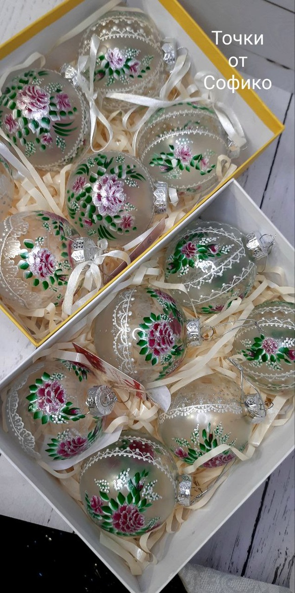 )). Нежнейшая "кружевная" роспись вокруг "ледяной" поверхности, украшенной мелкими розами делает эти шары легкими и воздушными. А на елке они смотрятся как льдинки, украшенные цветами. Уникальный дизайн делает эти шары эксклюзивным подарком для самых близких и родных людей. Цена наборов: стекло - 6000 р., пластик- 5500 р. По всем вопросам обращаться в лс София Балушкина #нежныеелочныешары #уникальныеелочныешары #коллекционныешары #неординарныеелочныеигрушки #точкиотсофико