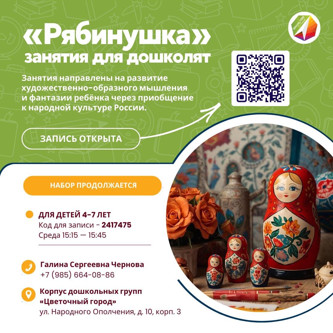 Открыт набор в объединение дополнительного образования «Рябинушка» для детей 4–7 лет