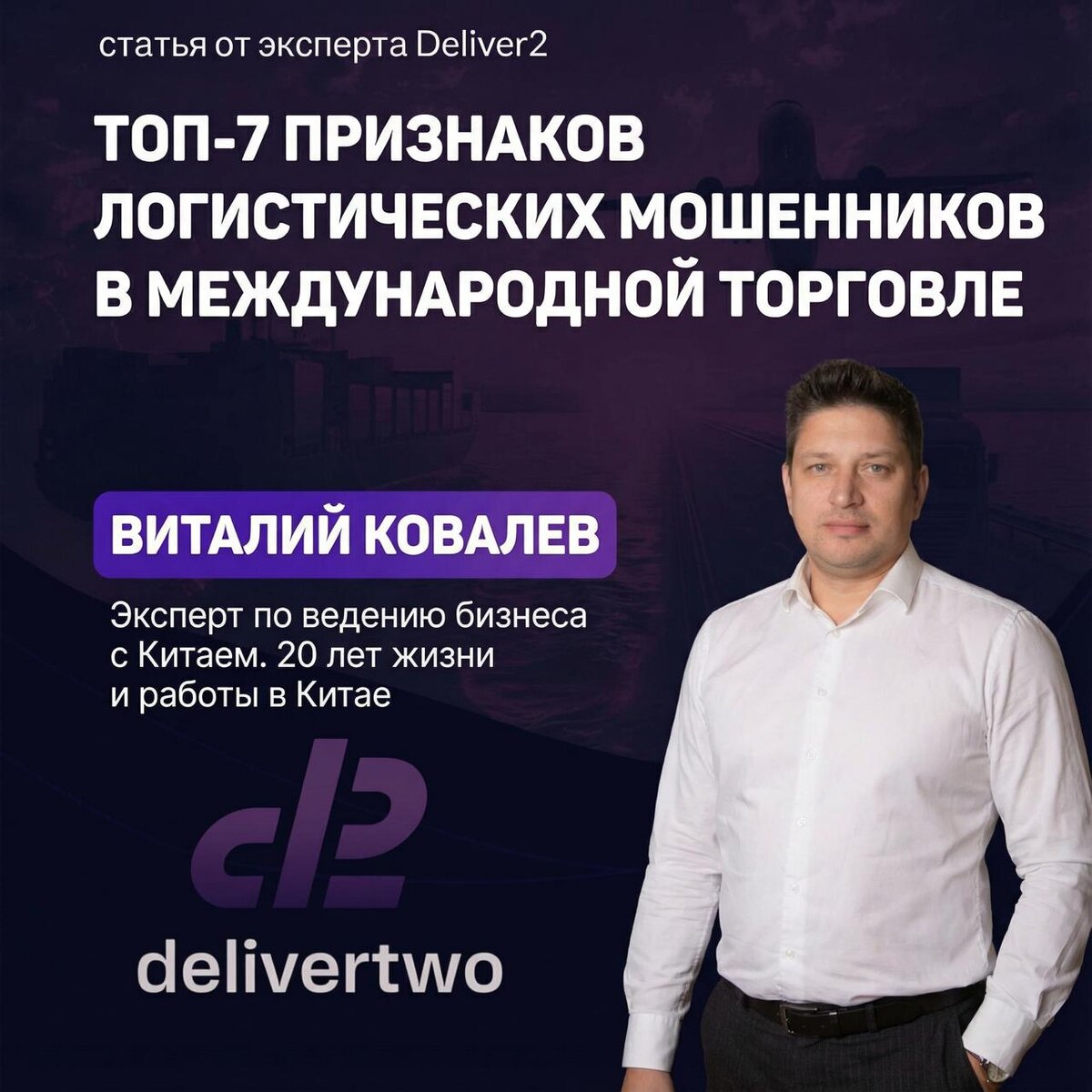 ” 🤩ВИТАЛИЙ КОВАЛЕВ - Эксперт по ведению бизнеса с Китаем 20 лет жизни и работы в Китае. Свободное владение китайским языком, включая бизнес-терминологию и юридические аспекты. Помощь компаниям избежать рисков и увеличить прибыль от сотрудничества с Китаем. 🤩 В международной логистике риски — не просто слова. Как отличить надежного перевозчика от мошенника и не потерять деньги и груз? На Deliver-2 вышел практический материал, в котором эксперт подробно разбирает 7 ключевых сигналов, выдающих недобросовестных логистов: от подозрительно низкой цены до фальшивых документов и отсутствия репутации в сети. Deliver2 В статье вы узнаете: 🤩 Почему слишком выгодное предложение — это чаще ловушка 🤩 Как проверять компании по реестрам и лицензиям? 🤩 На что смотреть в документах при международных перевозках? 🤩 Какие признаки поведения контрагентов должны насторожить? 🤩почему анализ присутствия в интернете и активность на биржах критичны для безопасности ВЭД-сделок. 🤩 Читайте полный разбо