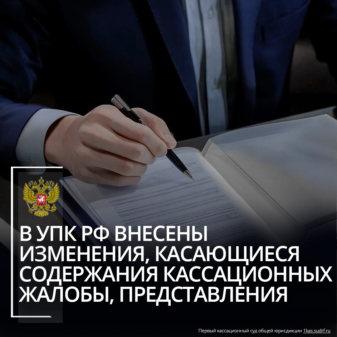 В УПК РФ внесены изменения, касающиеся содержания кассационных жалобы, представления