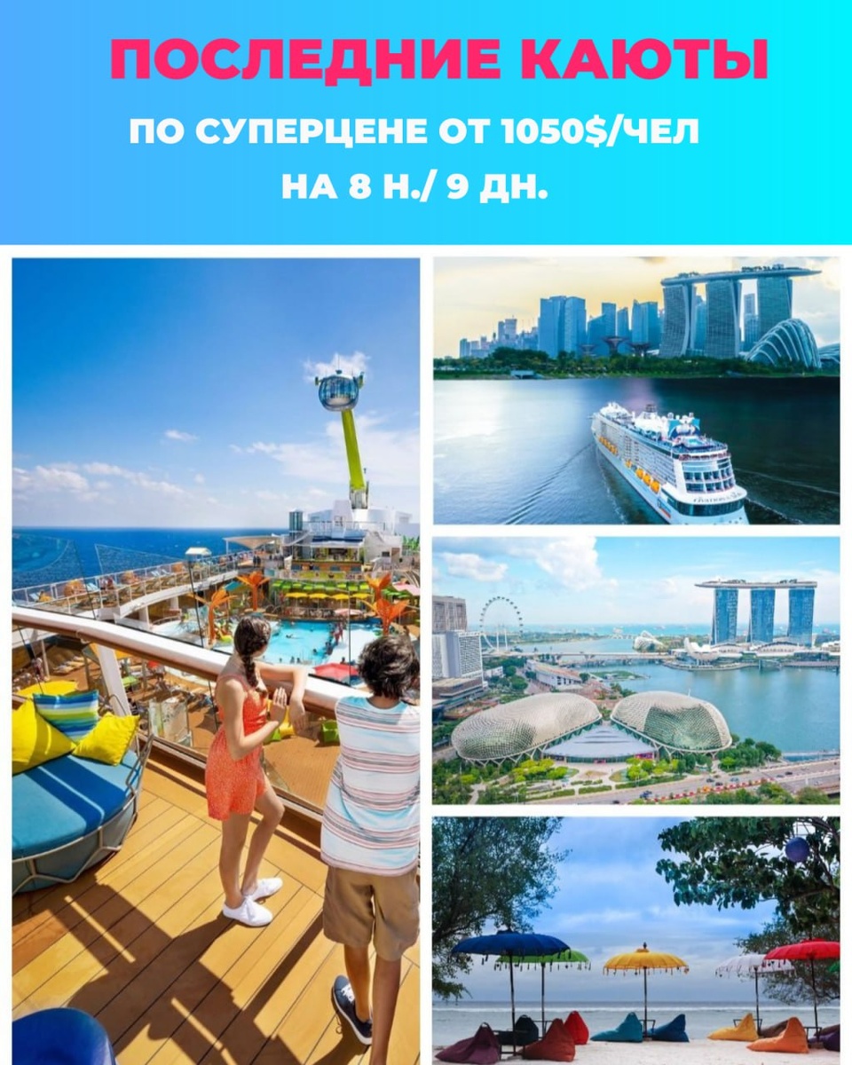 на 8 ночей/ 9 дней с питанием «Все включено»! Успейте присоединиться к Новогоднему круизу с «Русской группой» на лайнере Ovation of the Seas 5* с 28.12.25 на 8 н./ 9 дн. по маршруту: Сингапур - Челюкан Баванг, Бали - Беноа (Денпасар), о.Бали - Ломбок, Индонезия – Сингапур с питанием «Все включено» 🔥Последние места по суперцене: • внутренняя каюта с виртуальным балконом 2100$ за каюту для 2-х (1050 $/чел) по тарифу «Суперцена» Забронировать • каюта с балконом 3598$ за каюту для 2-х (1799 $/чел) по тарифу «Суперцена» Забронировать • 1/2 каюты для мужчины 1600$/ место в каюте с подселением к мужчине по тарифу «1/2 DBL каюта с подселением с невозвратным депозитом (NRD)» Забронировать Бронируйте круизы c «Русскими группами» по самым выгодным ценам онлайн на сайте lavoyage.ru ❓Есть вопросы – пишите в наш чат