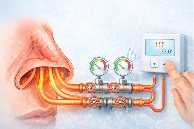 Привыкание к каплям в нос (медицинское название — медикаментозный ринит или тахифилаксия) — это распространенная проблема, возникающая из-за неправильного использования сосудосуживающих препаратов. Представьте, что слизистая носа — это система отопления с термостатом, который регулирует ширину кровеносных сосудов (сосуды = трубы с теплом). При насморке (отеке) наш собственный «термостат» (нервная система) сужает сосуды в носу, чтобы уменьшить приток крови и отек. Но при простуде или аллергии этот механизм слабо работает. Вы закапываете сосудосуживающие капли (нафтизин, ксилометазолин, оксиметазолин и др.). Эти вещества — мощные альфа-адреномиметики. Они искусственно и сильно сужают сосуды слизистой носа. Отек спадает, и вы прекрасно дышите. Но капли «обманывают» вашу систему. Организм видит, что сосуды сужены слишком сильно и надолго. Чтобы вернуть баланс, организм снижает чувствительность своих рецепторов к этим веществам (это называется десенситизация) и, что хуже, начинает расширят