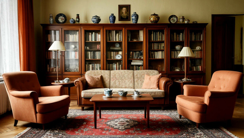 Для тех, чья юность пришлась на советские времена, уют — это прежде всего крепость. Надежная крепость от любой внешней неурядицы. Дом должен быть полной чашей, и это ощущается буквально. В серванте — полный набор праздничной посуды, которую берегут для особых случаев. В кладовой — банки с соленьями, заготовленными впрок. На стенах — ковры, которые не просто украшают, но утепляют и защищают.