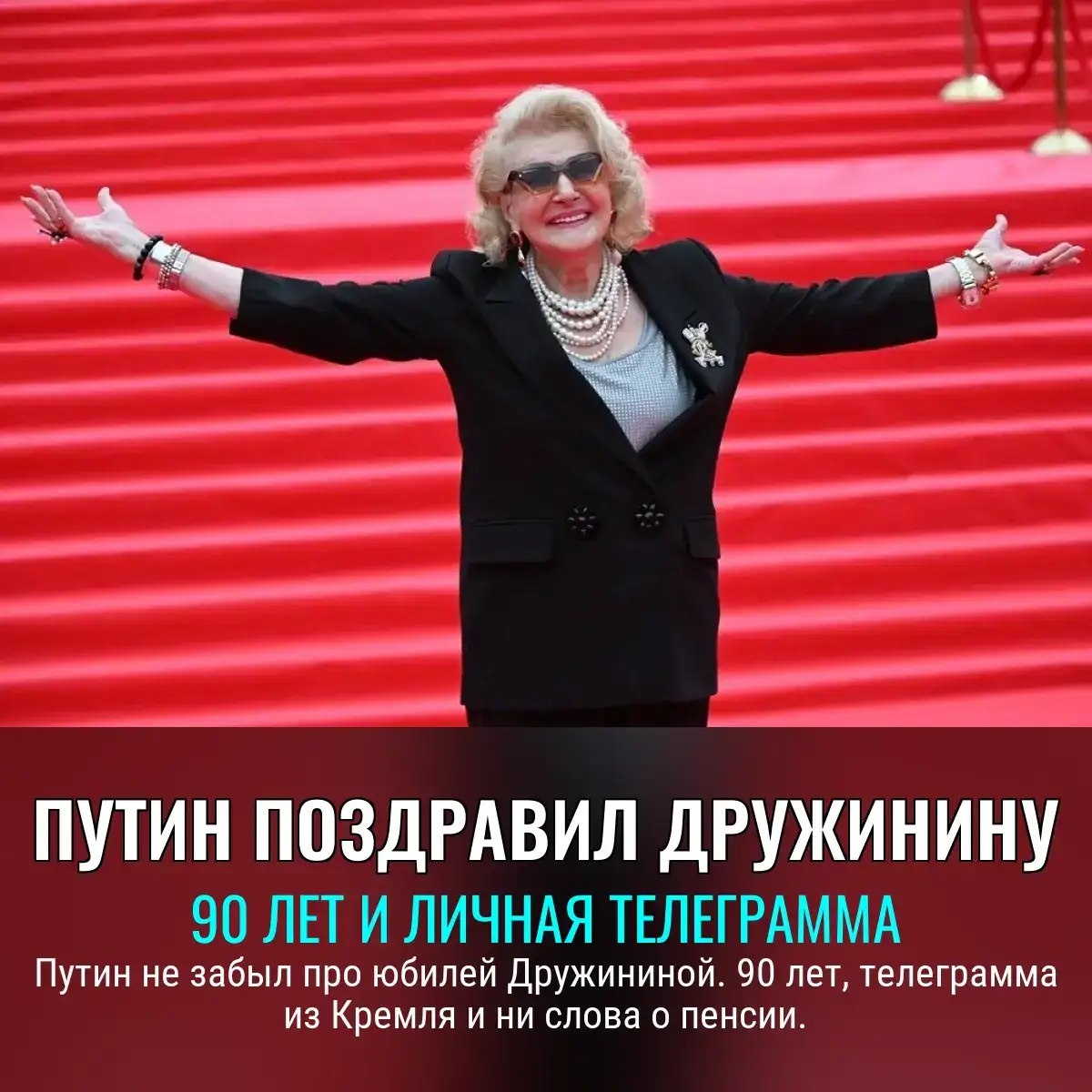 Светлана Дружинина, всем известная своими вечными лентами, получила личную телеграмму от главы страны. Теперь у кого-то снова гордость за Родину разыгралась, не иначе. 🎬 Кино, телеграммы и звонки Пахмутовой во время концерта — Кремль явно решил разогнать тоску по ностальгии до максимума. Давайте все пригреемся в лучах сияния культурной классики, пока дают., Следите за новостями 📩