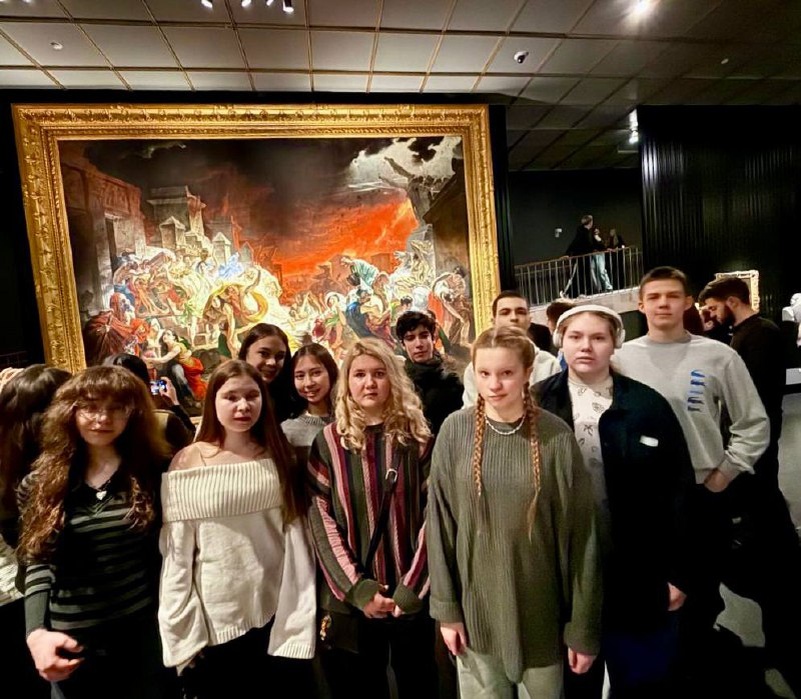 🎨 🖼 В минувшие выходные учащиеся 9-го «Л» класса вместе с классным руководителем Дмитрием Евгеньевичем Решетниковым посетили масштабную выставку «Карл Брюллов. Рим — Москва — Петербург» в Новой Третьяковке. 👨🎨 Ребятам посчастливилось стать участниками уникального события — увидеть работы живописца, которого ещё в XIX веке называли «первой кистью государства». Все произведения были собраны из разных музеев России и даже из частных коллекций, что сделало экспозицию поистине исключительной. ⚡️ Многие картины великого художника вызвали у девятиклассников неподдельный интерес и восхищение. Среди них — знаменитая «Всадница», чувственная «Вирсавия», автопортреты Брюллова, написанные в разные периоды жизни и центральное произведение выставки — грандиозное полотно «Последний день Помпеи», специально привезённое в Москву из Русского музея Санкт-Петербурга. 📚 Посещение выставки помогло не только ближе познакомиться с биографией выдающегося художника и насладиться его творениями, но и вс