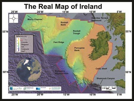 Обожаю «настоящие карты» (вернее, НАСТОЯЩИЕ карты): Эту года с 2008-го популяризует государственный ирландский Морской институт (Marine Institute / Foras na Mara) под слоганом The Map of Ireland Is Bigger Than You Think. Что, правда?
