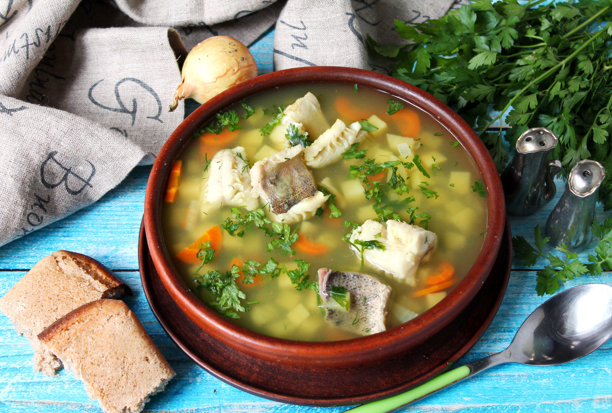 - Уха с пшеном. Добавьте 2 ст. л. промытого пшена вместе с картофелем.