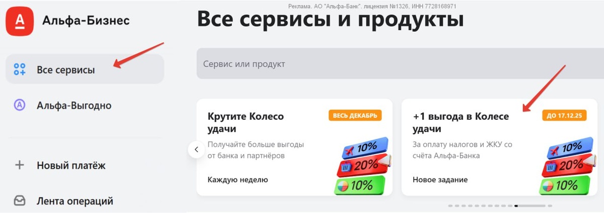 ⚡ В Альфа‑Бизнесе открыли дополнительную попытку крутить «Колесо удачи» за прошлое недельное задание — и тут как раз работает простой лайфхак: часто выпадает тот приз, который видите при входе. Если нужен другой, просто вернитесь назад и откройте колесо заново. 👨💼 Я сегодня «накрутил» так на 3000 баллов, то есть 3000 руб. на счет. 🗒️ Новое задание: с 15 по 17.12 оплатить ЖКХ в ЛК Альфа‑Бизнес или налоги / другие обязательные платежи в бюджет с расчетного счета Альфы, сумма любая. 🔴 Где искать: веб‑версия Альфа‑Бизнес → «Все сервисы» → листаем баннеры вправо. 🔴 Награда за выполнение нового задания: доп. попытка кручения с 22 по 28.12. Как оплатить ЖКУ, чтобы дали +1 вращение: 1⃣ Найдите ЕЛС: в ГИС ЖКХ или в квитанции. 2⃣ В ЛК Альфа‑Бизнес откройте: «Новый платёж» → «Другие сервисы» → «ЖКУ и штрафы ГАИ» → «Счета ЖКУ». 3⃣ Нажмите «Добавить новый», введите ЕЛС, затем: «Поиск начислений» → «Создать платеж». 4️⃣ В «Платежи в работе» отметьте «Подписать» и обязательно «Отправит