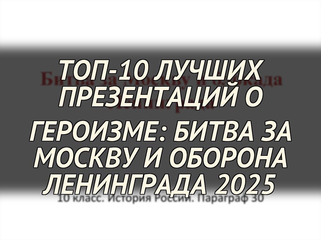 В нашей статье мы собрали топ-10 лучших презентаций, отобранных по критериям качества, информативности и эмоционального воздействия. Эти работы от талантливых авторов и профессионалов в области истории, дизайна и публичных выступлений помогут вам погрузиться в атмосферу тех времен, понять тактические особенности битв и оценить вклад городских жителей Ленинграда и защитников Москвы. Каждая презентация сопровождается кратким описанием и советами по применению в образовании или личных проектах.