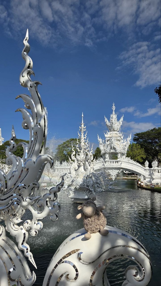 Это новодел из конца 90-х, построенный на месте старого храма. Все строительство осуществляется за счёт художника с непроизносимым именем. В стройку он вложил более миллиона долларов, и пожертвования не принимает. Закончить комплекс планируется к 2070 году! В общем, какой-то богатый чудак решил, что он Антонио Гауди. Создаёт, то что нравится, никого не слушая. В целом, это напоминает тематический парк в духе Лас-Вегаса и Диснейленда. Вся архитектура создана для того чтобы делать фоточки, и только за этим сюда и приезжают. О религии и вере тут речи не идет... #🐑 #Тай2026