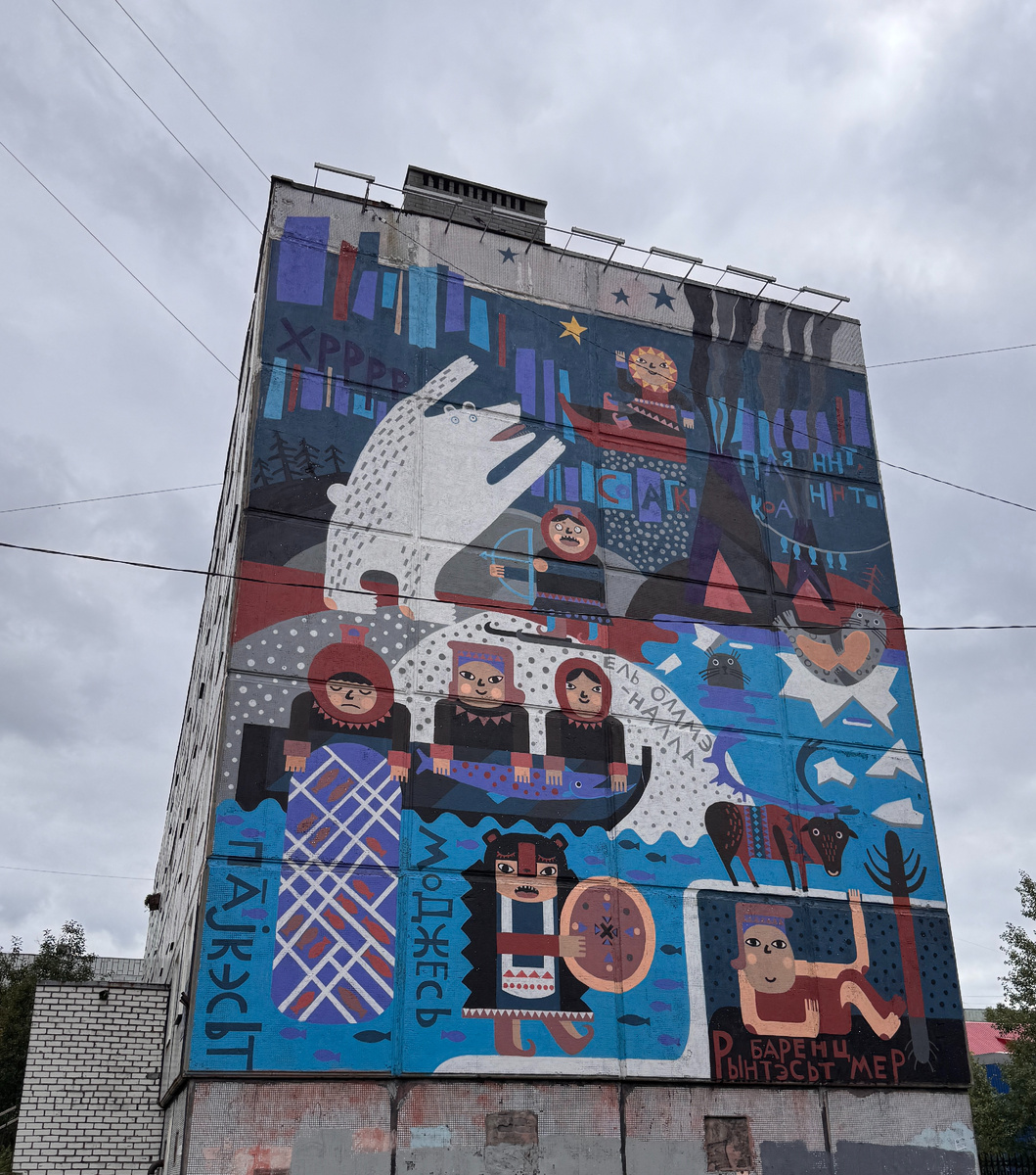 Как в городе появились красочные граффити? Мурманский стрит-арт фестиваль притягивает в город современных художников. Пожалуй, одно из самых приятных занятий при изучении новых регионов и мест — знакомство с местными жителями, влюбленными в свои города. И мы всегда стараемся находить таких людей! Например, в июле познакомились с международным Арктическим фестивалем паблик-арта «Рост», который проходит в Мурманске уже 5 лет. Расскажем о нём! Северный город несколько месяцев в году проводит в темноте. Местные жители решили добавить ему ярких красок! В 2021-м году Мария Михайленко, коренная мурманчанка, и её коллеги Юрий Шачнев и Полина Малышкина организовали ежегодный фестиваль паблик-арта. И серые фасады типовых жилых домов превратились в холсты для современных художников! Первым местом проведения фестиваля стал район Рост, построенный на окраине города специально для работников судоремонтного завода. В следующие годы «чистые холсты» команда находила в разных частях города. Например,