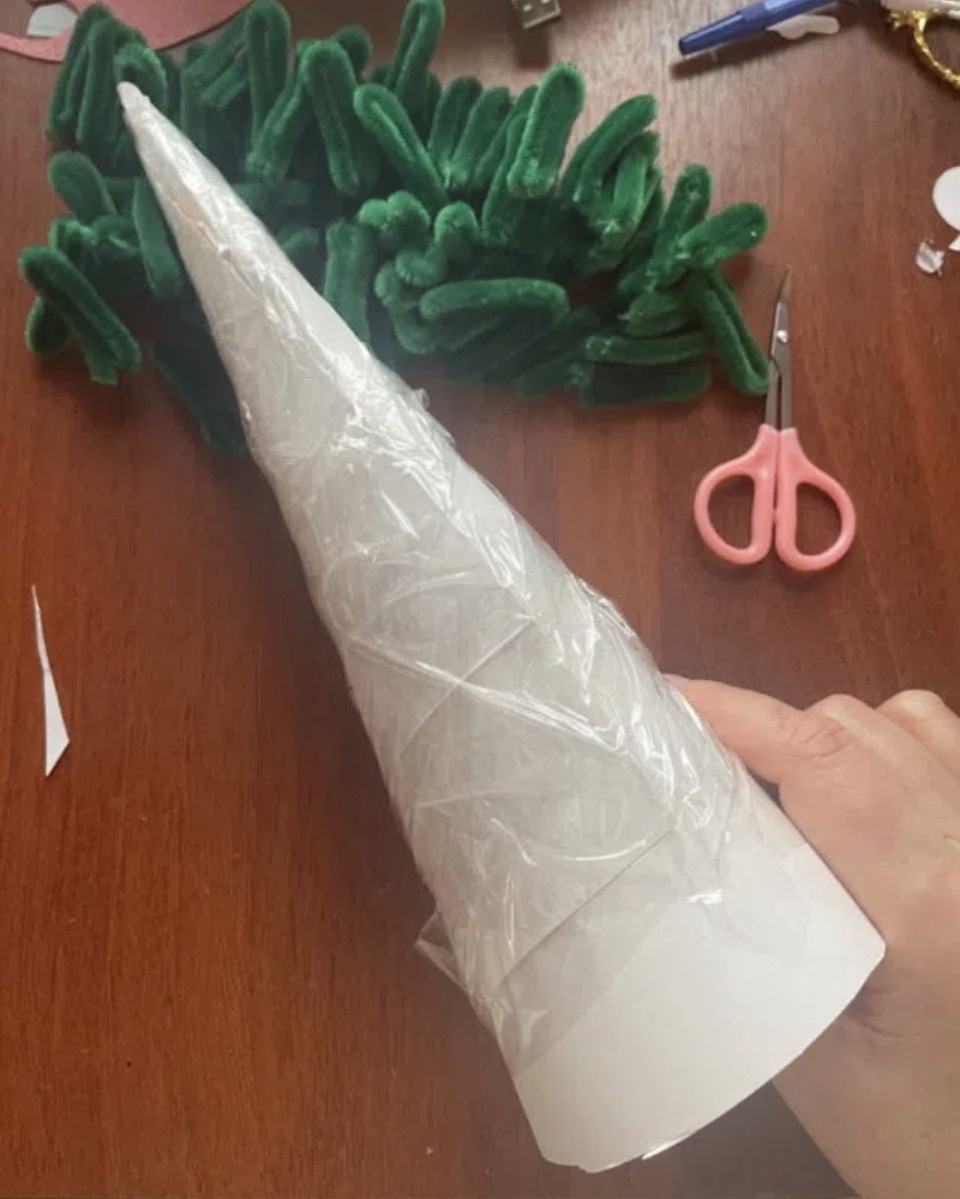 Итак, из картона скручиваем конус нужного размера, Закрепляем скотчем: