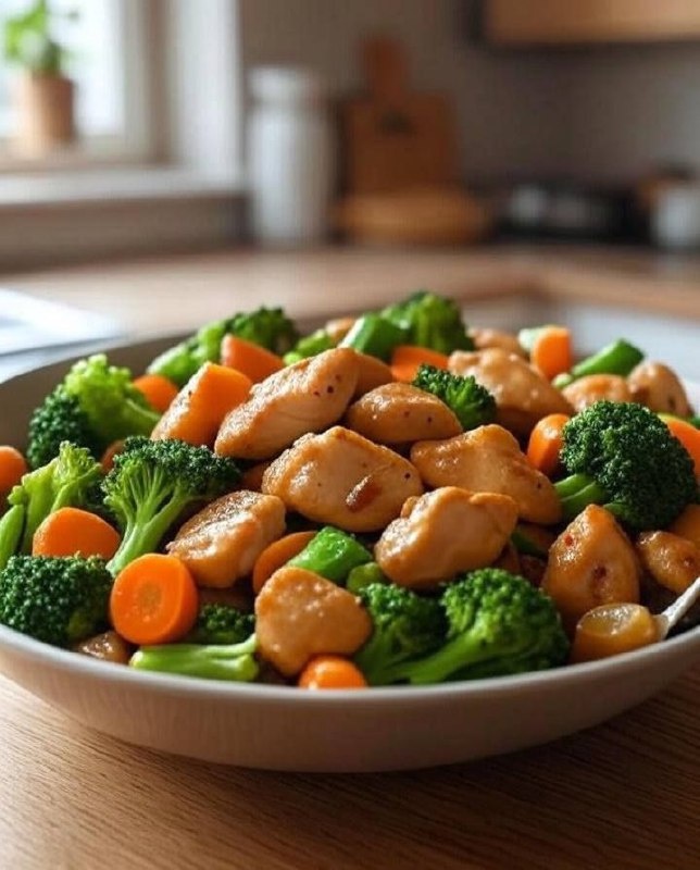 🧑🍳 КБЖУ (на порцию): 220 ккал / Б: 27 / Ж: 8 / У: 15 Ингредиенты: • Куриное филе — 150 г • Брокколи — 100 г • Морковь — 50 г • Соевый соус — 1 ст.л. • Имбирь молотый — ½ ч.л. 👨🏻🍳 Приготовление: Обжарь курицу с имбирём, добавь овощи и соевый соус, туши 7–10 мин. ✨ Худеем правильно ✨ #ЗдоровоеПитание #ПравильноеПитание #ППрецепты #ПолезныеПродукты #Безсахара #НатуральнаяЕда #Похудение #Стройность #ФигураМечты #Диета