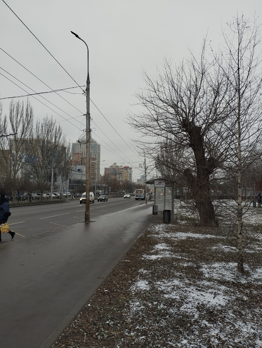 Впрочем, снега, как видите совсем чуть-чуть. Судя по прогнозу, в ближайшие дни он совсем растает. Ну, а сегодня всё-таки прогуляемся по проспекту Ильича за рекой Кальмиус, потому что мост через неё надолго закрыт из-за капитального ремонта моста: