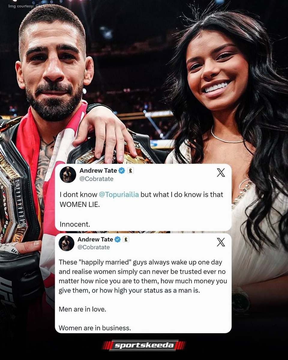 Тема бракоразводного процесса Топурии вышла за пределы ММА-комьюнити и дошла до главного американского борца за права мужчин в интернете Я не знаю Илию, но что я точно знаю, так это то, что ЖЕНЩИНЫ ЛГУТ. Невиновен. Эти «счастливо женатые» парни всегда просыпаются однажды с осознанием, что женщинам просто никогда нельзя доверять, независимо от того, как хорошо ты к ним относишься, сколько денег им даришь или как высок твой статус мужчины. Мужчины — по любви. Женщины — только бизнес 👊 В Лапах ММА