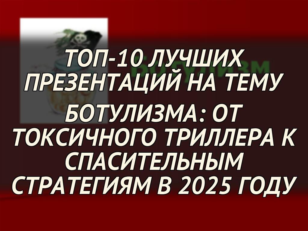В данной статье мы представляем топ-10 лучших презентаций на тему ботулизма, отобранных по критериям информативности, визуальности и доступности. Эти материалы, подготовленные экспертами и организациями здравоохранения, помогут глубже понять симптомы, причины и меры профилактики, а также вдохновят на создание собственных образовательных проектов. Независимо от того, являетесь ли вы студентом, врачом или просто заинтересованным человеком, эти презентации предложат ценные insights для повышения осведомленности.