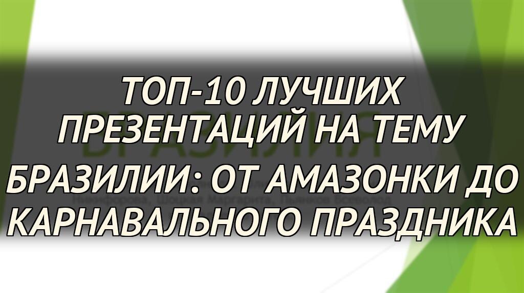 Представляем топ-10 лучших презентаций, отобранных за их креативность, точность информации и визуальную привлекательность. Каждая из них раскрывает Бразилию через уникальный призму: от экономического подъема и экологических вызовов до праздников карнавала и кулинарных традиций. Эти работы не только информируют, но и впечатляют, делая каждую презентацию незабываемым путешествием по самому сердцу Южной Америки.