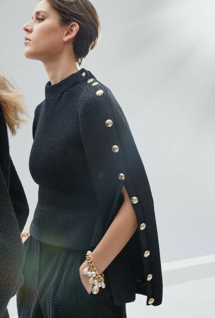 Добрый день, дорогие рукодельницы! Сегодня я хочу поделиться с вами вдохновляющими идеями для вязания. Я покажу модели, которые не только оригинальны, но и просты в исполнении. Уверена, они вдохновят вас на новые творческие свершения! Я постараюсь найти и другие интересные идеи, чтобы вы могли выбирать из большего количества моделей. Не забывайте подписываться на мои социальные сети! Мне будет приятно узнать, понравились ли вам мои идеи или нет. Буду очень благодарна, если вы подпишитесь на все мои соц сети: Вконтакте ссылка Телеграмм ссылка Одноклассники ссылка Ютуб ссылка Второй дзен канал ссылка Обратите внимание на эту модель! Она отличается широкими рукавами и оригинальной планкой, которая проходит по плечу. На модели расположены большие гладкие пуговицы, что придаёт ей особый шарм. Выглядит очень интересно и, я думаю, это отличная идея для вашего творчества! Можно так связать только с одной стороны. Эта модель очень похожа на первую, но имеет свои отличия. Она менее свободная