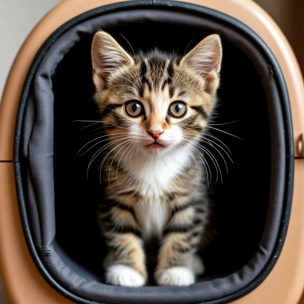 Миску с кормом поставили в переноску. Забыв об осторожности, кошечка зашла туда. И тут же услышала как за ее спиной закрыли "молнию". Ее поймали в ловушку!