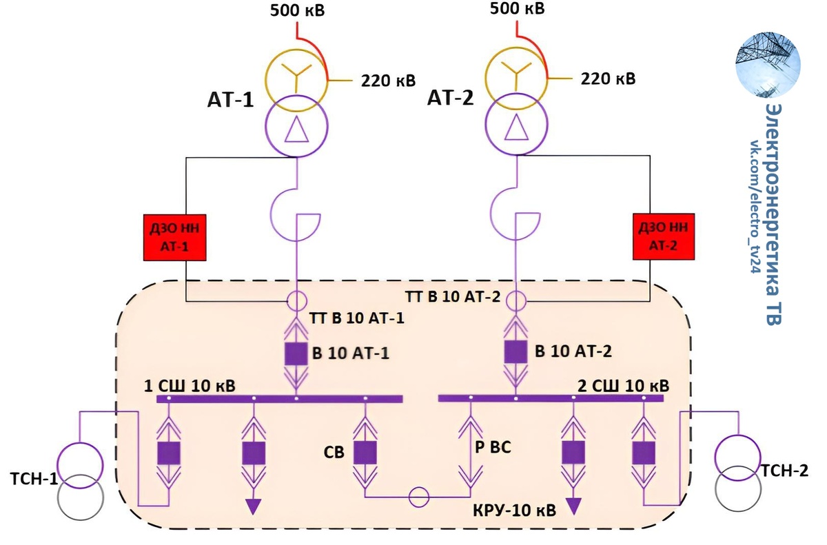📌На достаточно большом количестве магистральных подстанций существует требование вывода АВР на секционном выключателе РУ, подключённого к низкой стороне автотрансформаторов. Такое требование обосновывается проектными просчётами в части установки трансформаторов тока в РУ, которые не рассчитаны на протекание больших токов КЗ, что приводит к моментальному их