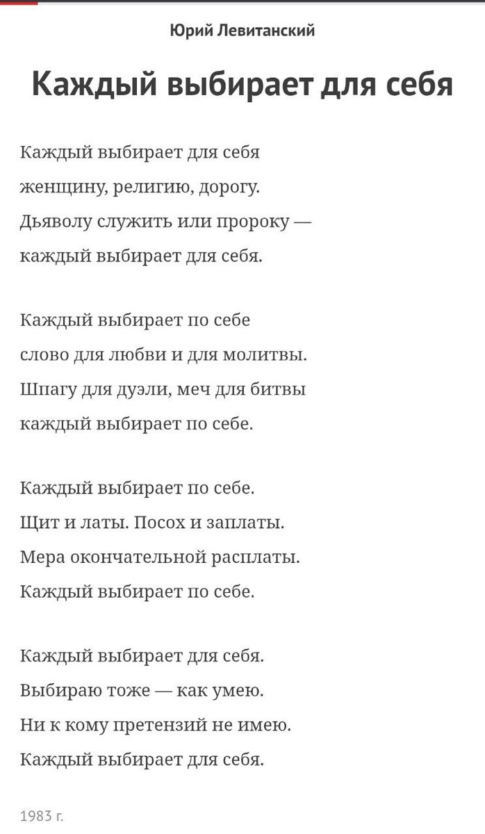 А вот это одно из важных основ в моем мире в стихотворении Левитанского
