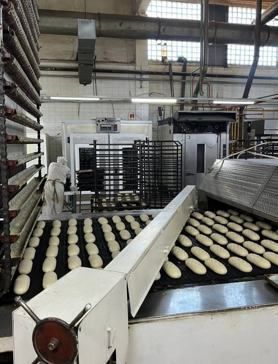 Вы задумывались, как на батоны наносят насечки? Мы посмотрели на хлебозаводе в Новгороде - очень красивая схема! 🥖 Батоны из расстоечного шкафа подаются на ленту транспортера, ровными рядами. 🥖 Над лентой диагонально висит крепление, по которому туда-сюда ездит нож-лезвие. 🥖 И он так же рядами ровно надсекает тесто, каждым проходом делает несколько полосок в нескольких батонах. Красиво!!!