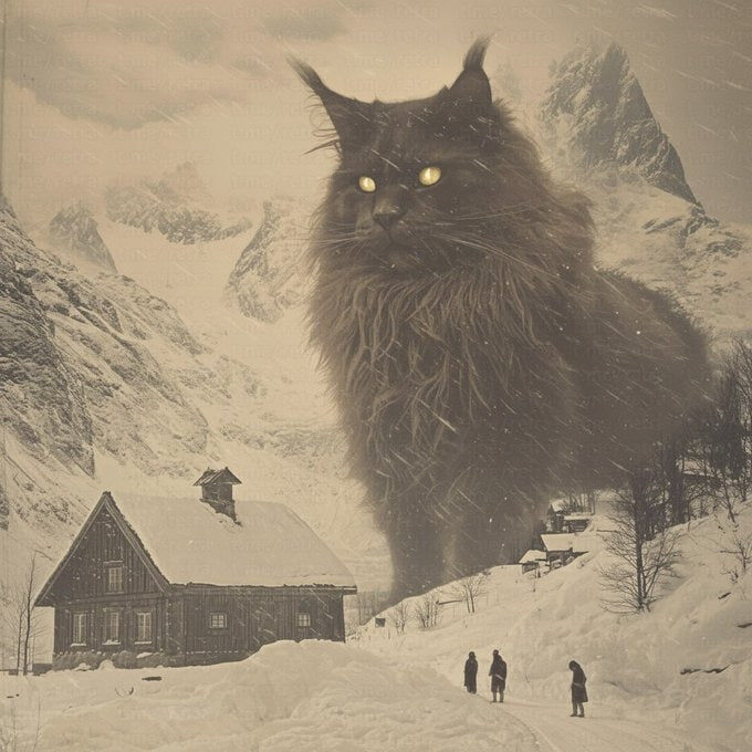 ? Почему бы и нет! Такой персонаж есть в исландском фольклоре. Это Йольский кот или Йолакёттуринн. Он заходит в селения и бродит по ночам во время Йоля (Святок), нападает и съедает тех, кто не обзавелся в канун Рождества новой одеждой. Обновки в гардеробе считались признаком того, что человек не ленился, а успел собрать всю овечью шерсть до зимы и изготовить из неё тёплые вещи. Как правило, работа завершалась как раз к Святкам, когда в Исландии проходили торги.